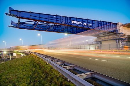 Segmenten van een wegdek worden over de A16 van één kant naar de andere kant geschoten via een lanceerneus die over de twee rijbanen is gebouwd. Aan Mavom is advies gevraagd voor een siliconenpasta die de zware objecten goed laat glijden en frictie reduceert.