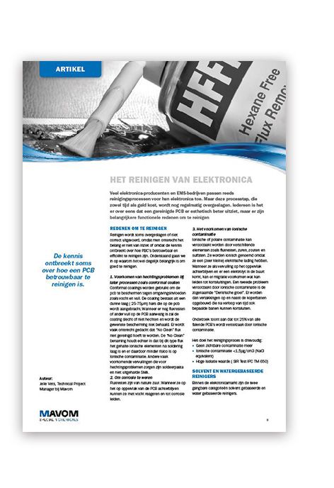Veel elektronica-producenten en EMS-bedrijven passen reeds reinigingsprocessen voor hun elektronica toe. Maar deze processtap, die zowel tijd als geld kost, wordt nog regelmatig overgeslagen. Iedereen is het er over eens dat een gereinigde PCB er esthetisch beter uitziet, maar er zijn belangrijkere functionele redenen om te reinigen. Het is geen luxe, maar een essentiële stap voor kwaliteitsborging en duurzaamheid. Lees er meer over in dit artikel: